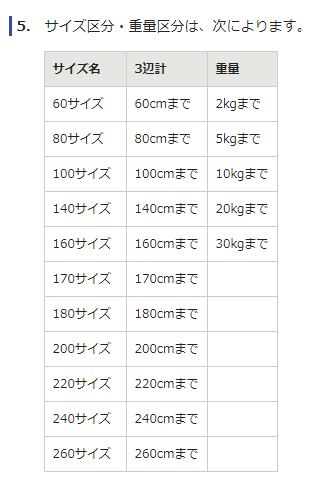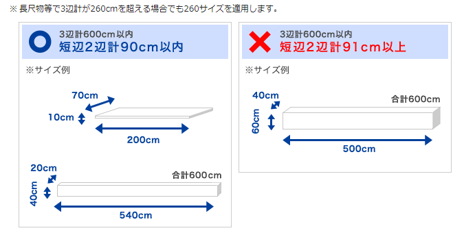 個当たりの大きさの制限は、3辺合計が200cmまでです。