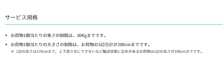 輸送状態に定めがあるお荷物は1辺の長さが100cmまでです。