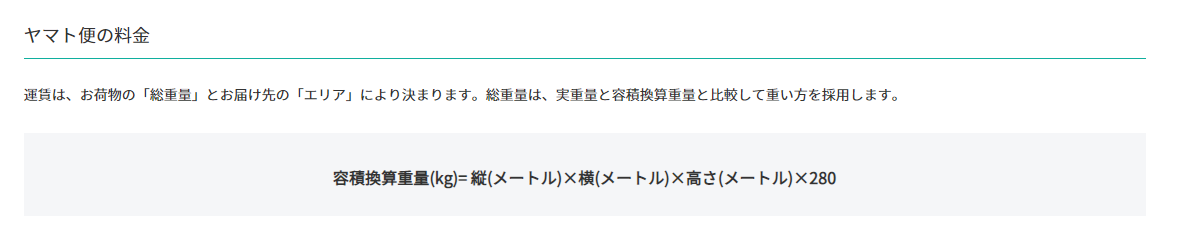 重量より容積重量(縦×横×高さ×280キロ)が大きい場合、