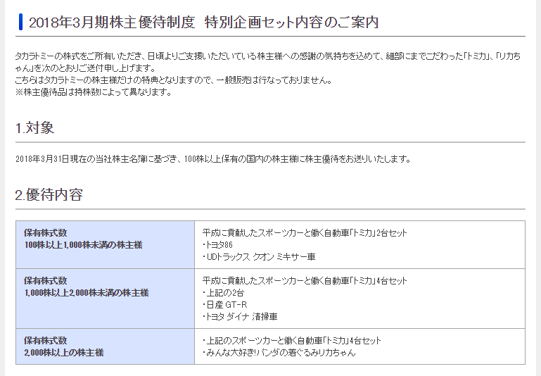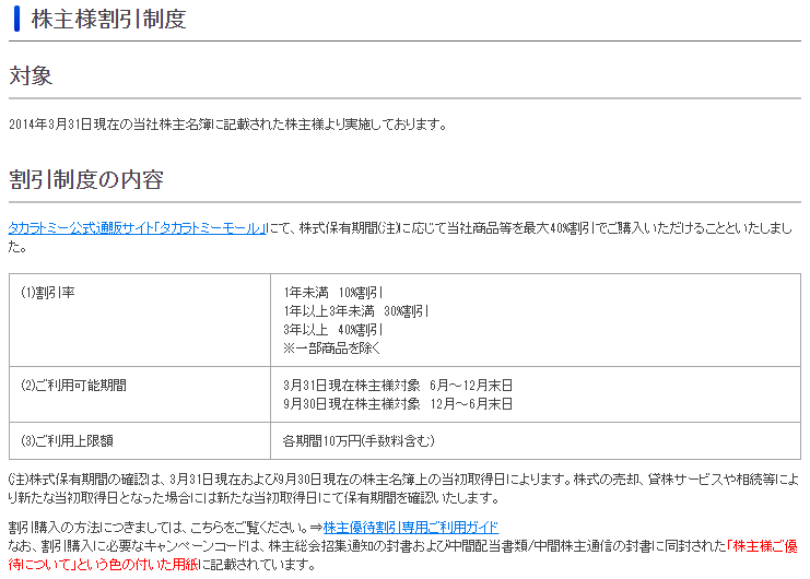 タカラトミーの株主になると、