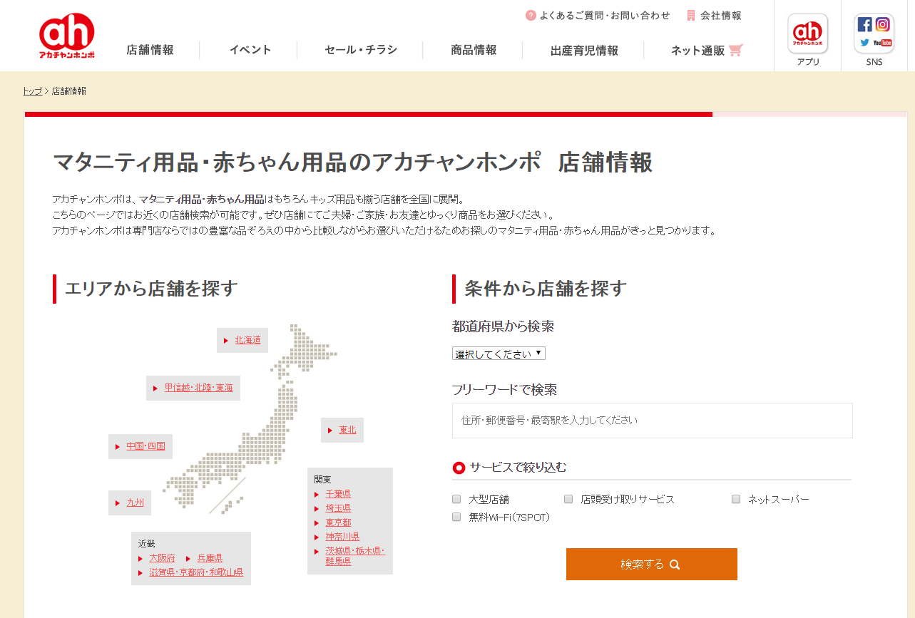 赤ちゃん本舗の店舗検索