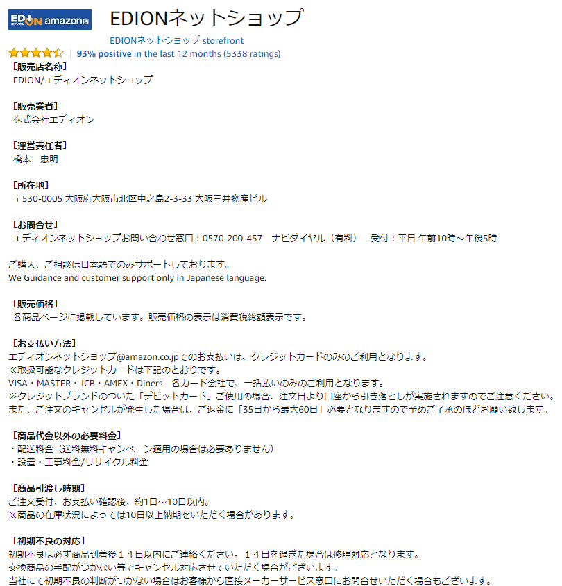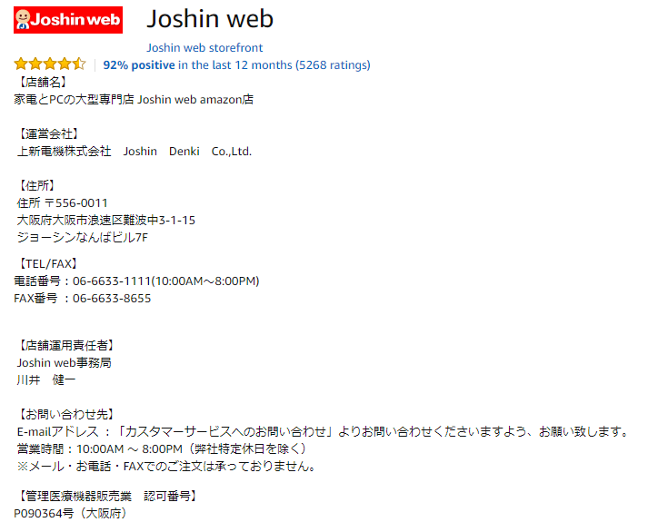 その際にAmazonでの出品者情報を見たとき