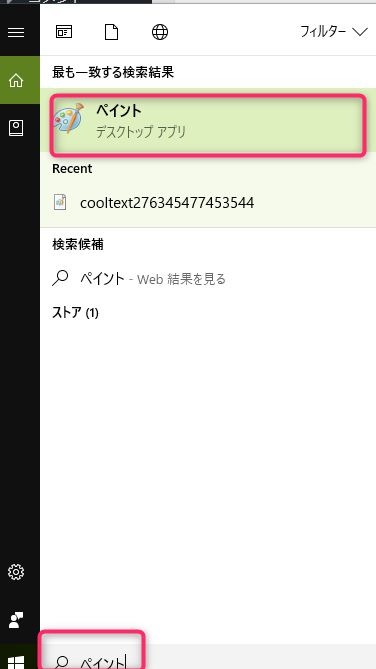 ペイントと入力してソフトを探します。