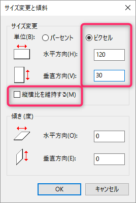 縦横比を維持するはレ点チェックが