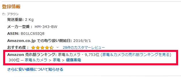 300位はその中の健康家電のサブカテゴリー(小分類)の順位になります。