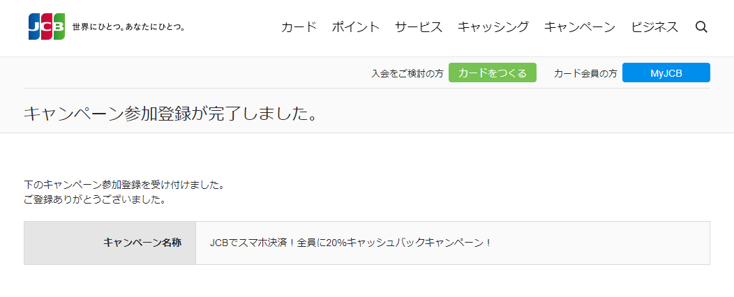 JCB20%ポイント還元のキャンペーンの応募はこちらから