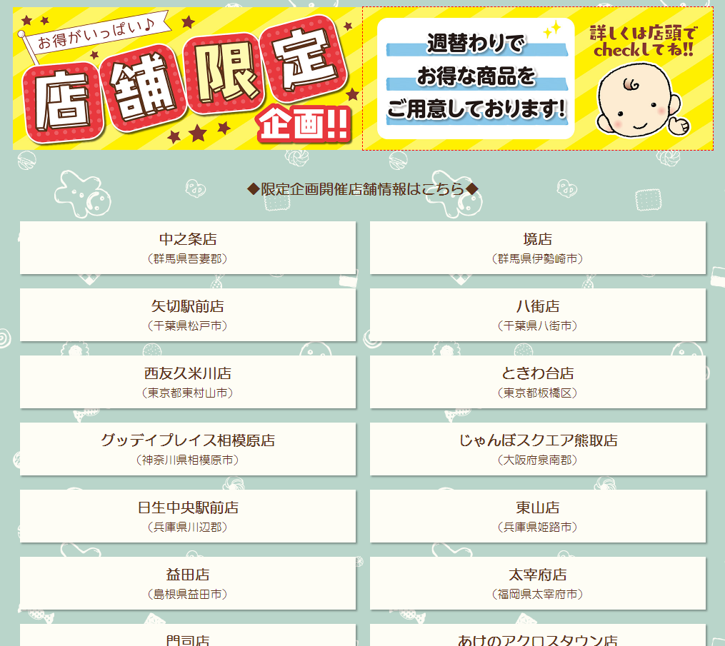 バースデイはベビー用品店でしまむらの系列店舗とあって