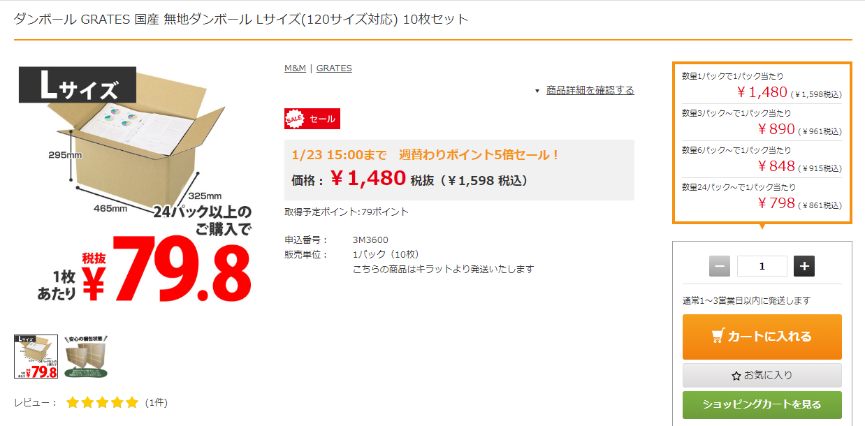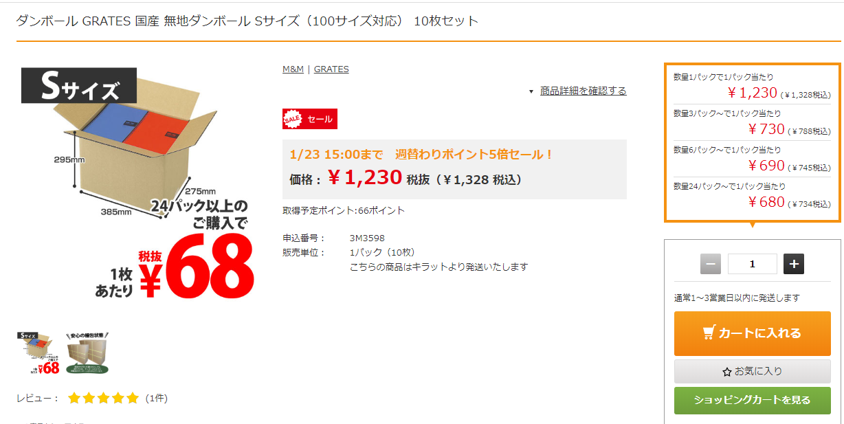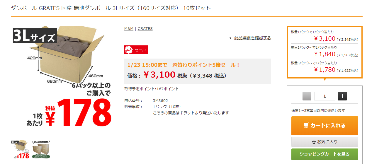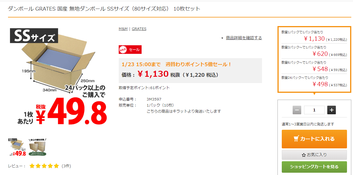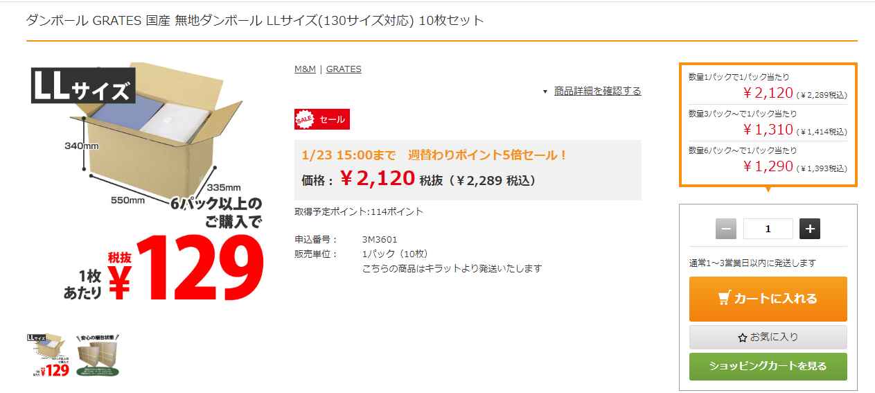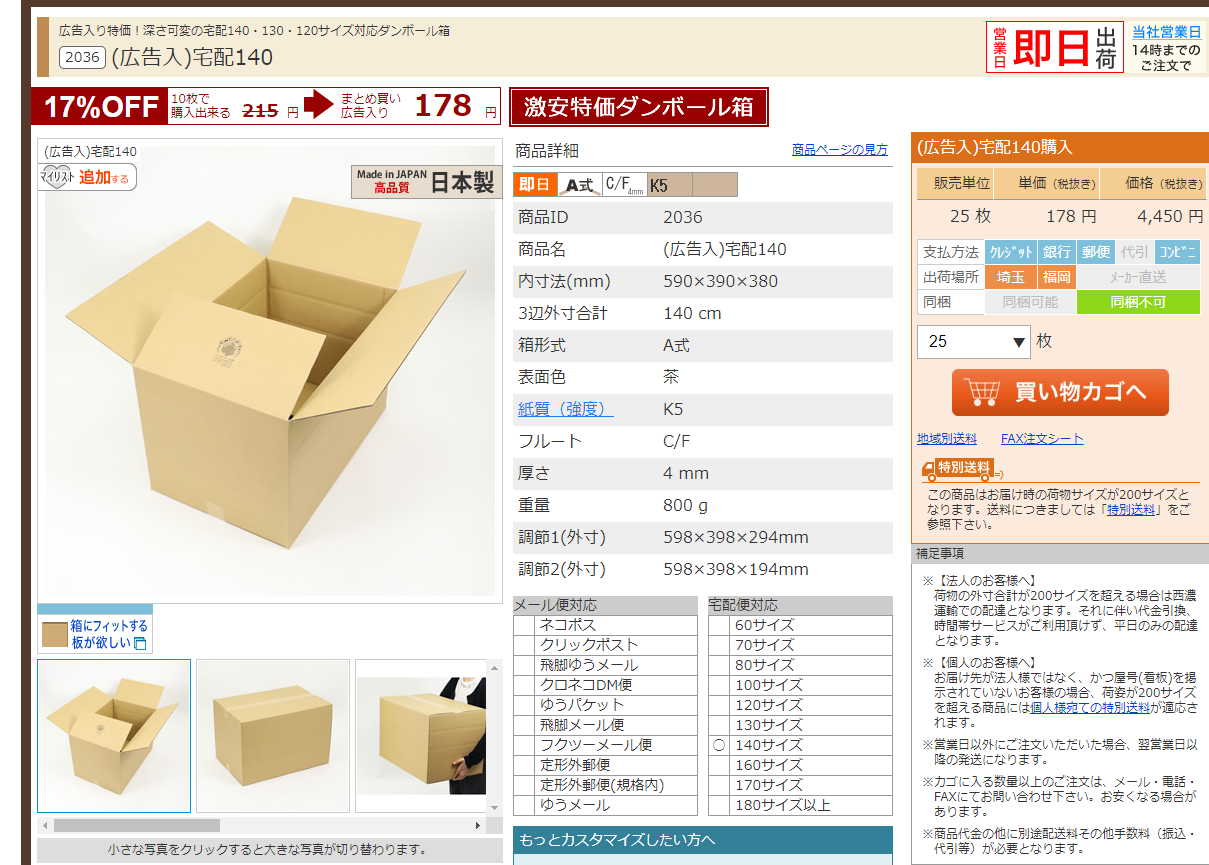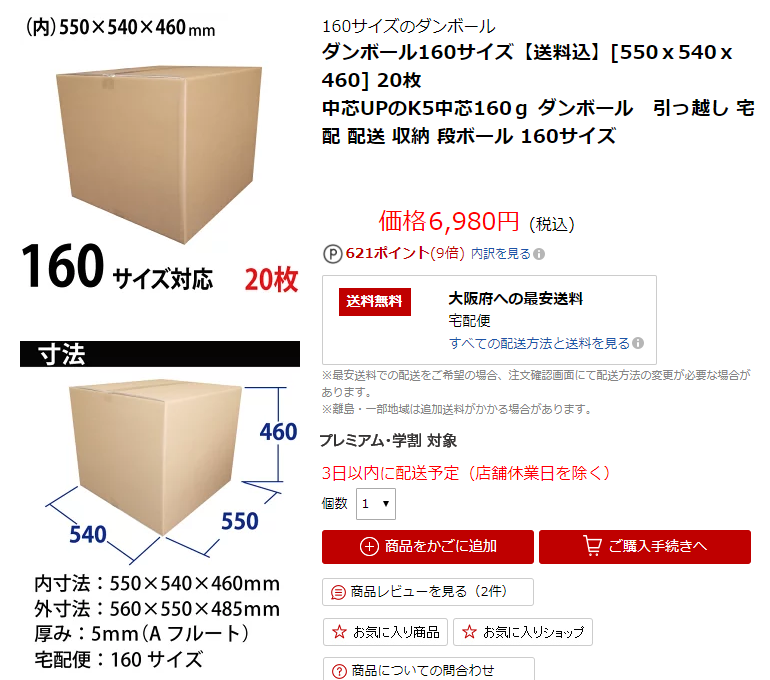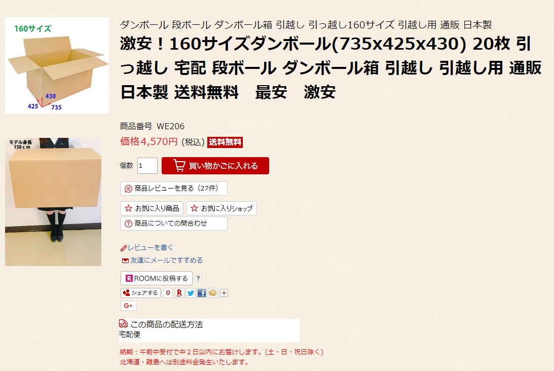 →せどりで納品に使う段ボールの最安160サイズの長方形