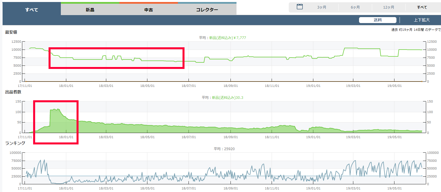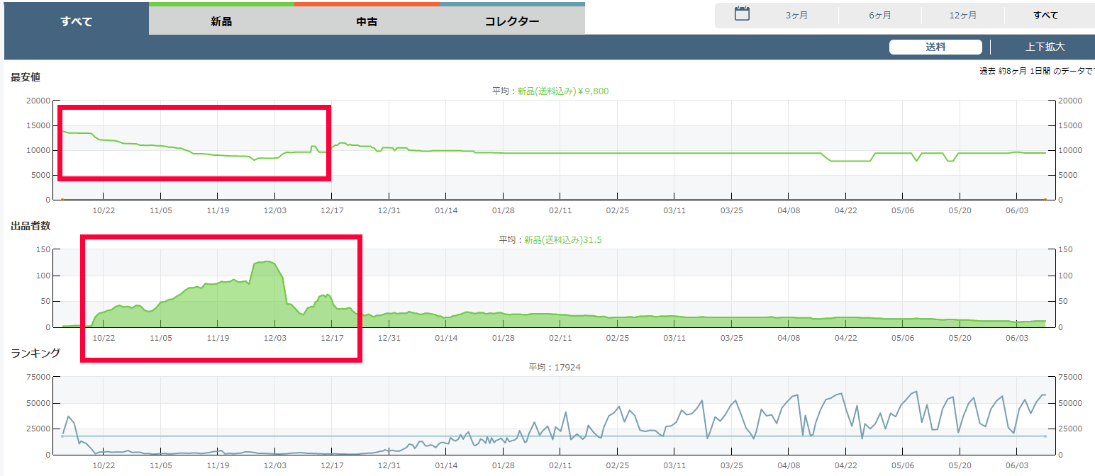 その商品のAmazonの過去の市場動向と、