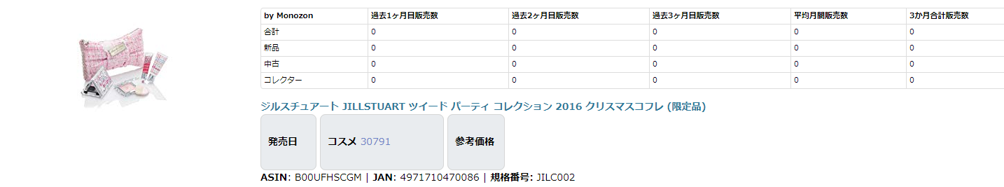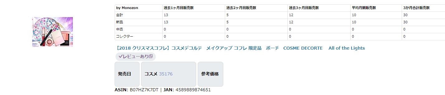 クリスマスコフレの稼げた商品の例