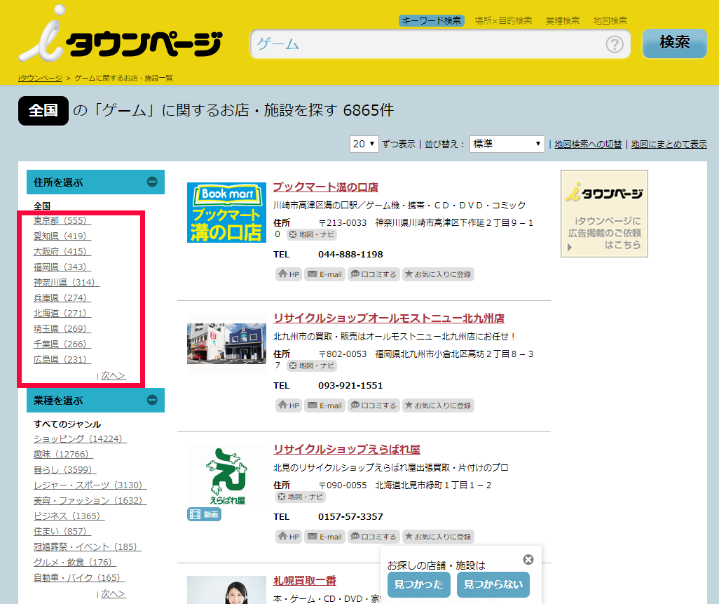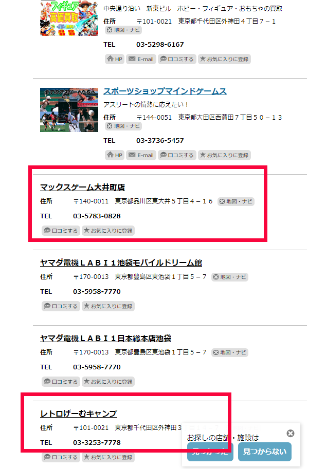 個人店のおもちゃ屋やゲームショップを探しましょう。