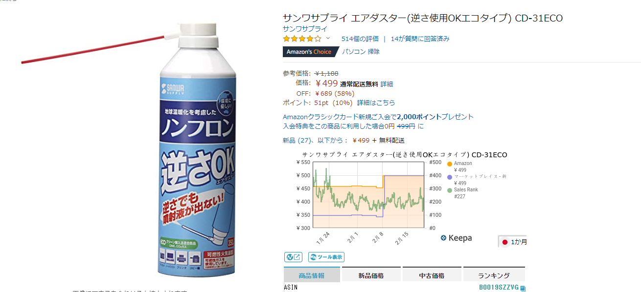 サンワサプライのエアダスター