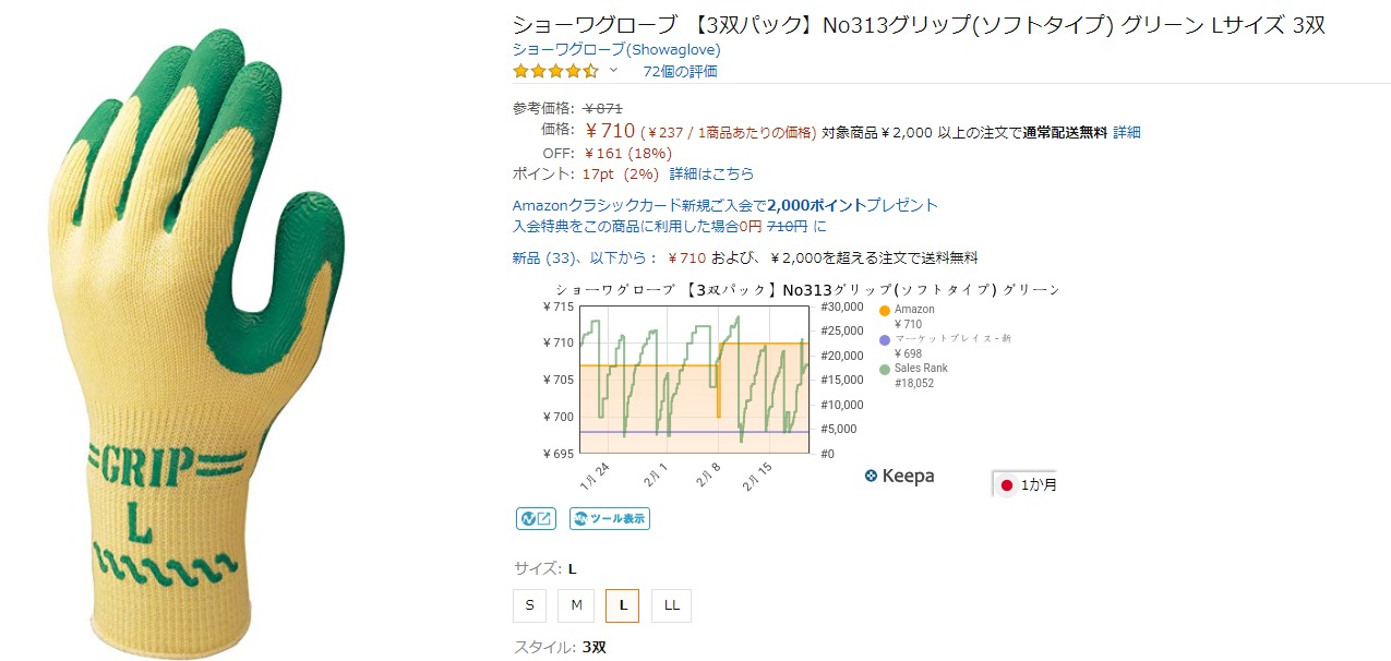 一般の綿の軍手と違い、手のひらに天然ゴムが加工されているため、