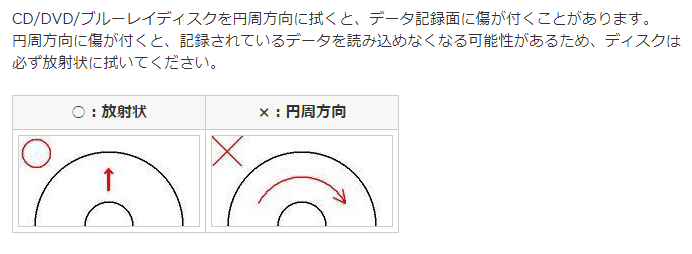 メディア用のクロスとは、強く拭き取らないようにしてください。