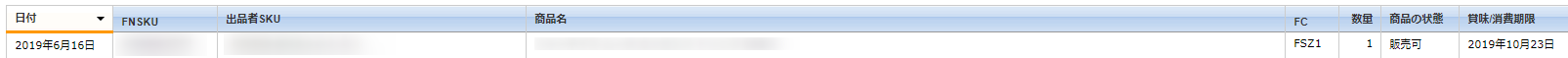 押すと、FBA納品した商品の期限の一覧が表示されます。