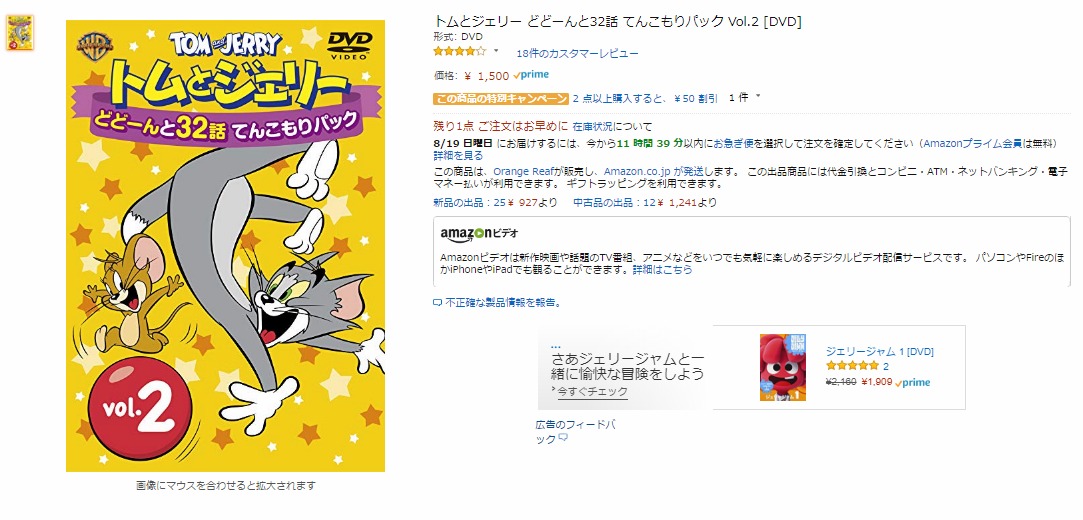 トムとジェリーのDVDです。