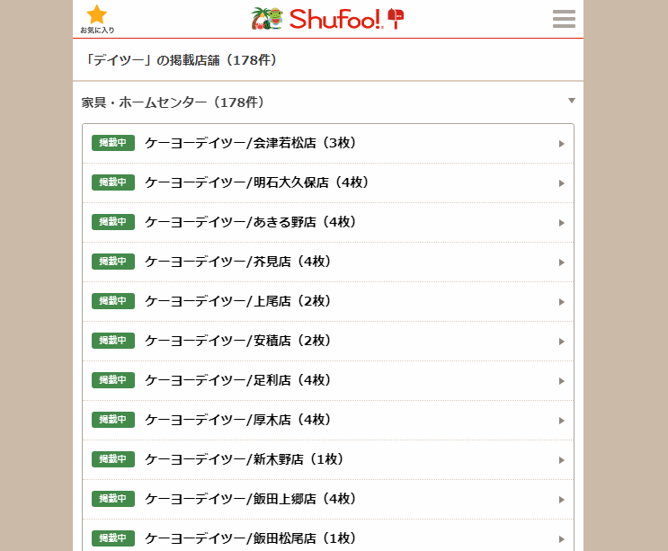 ◯シュフーでチラシチェック
