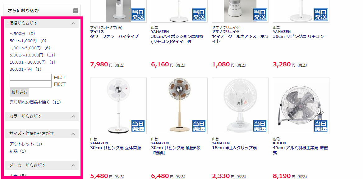 価格やメーカーから細かく探せますし、