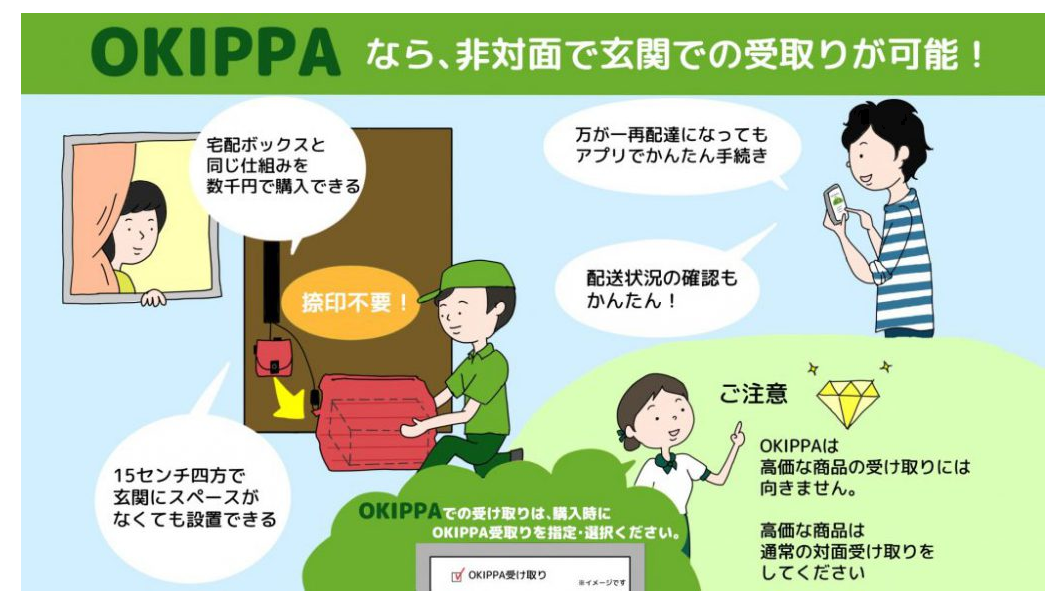 OKIPPAという宅配ボックスで対面での受け取りは不要