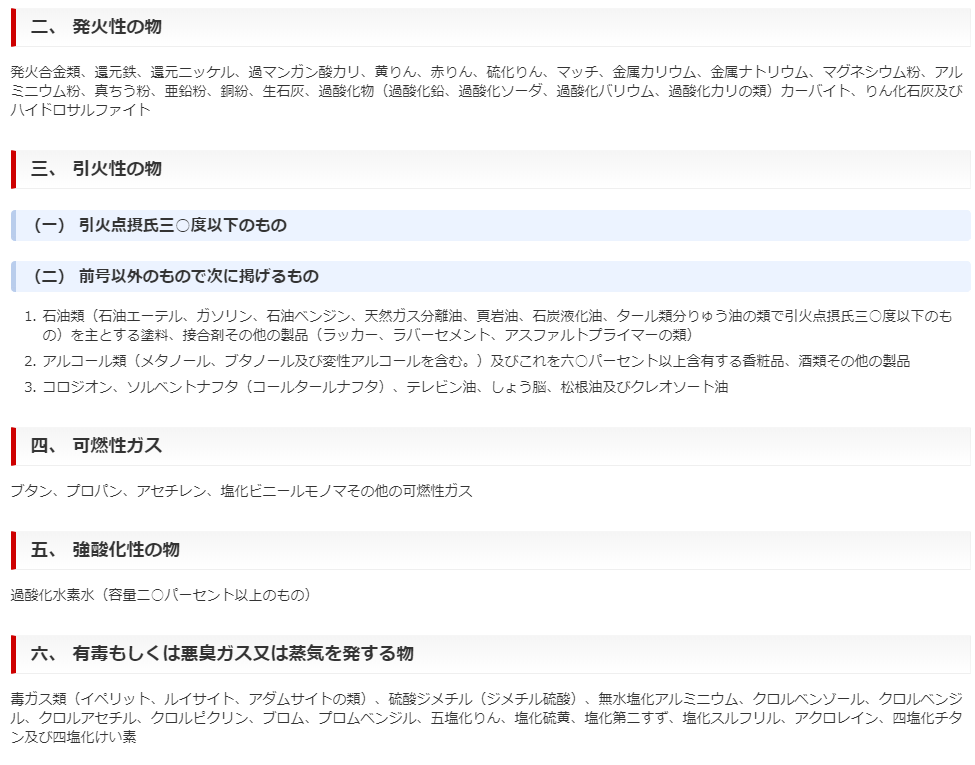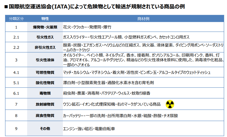 消防法、国際航空運送協会(IATA)によって