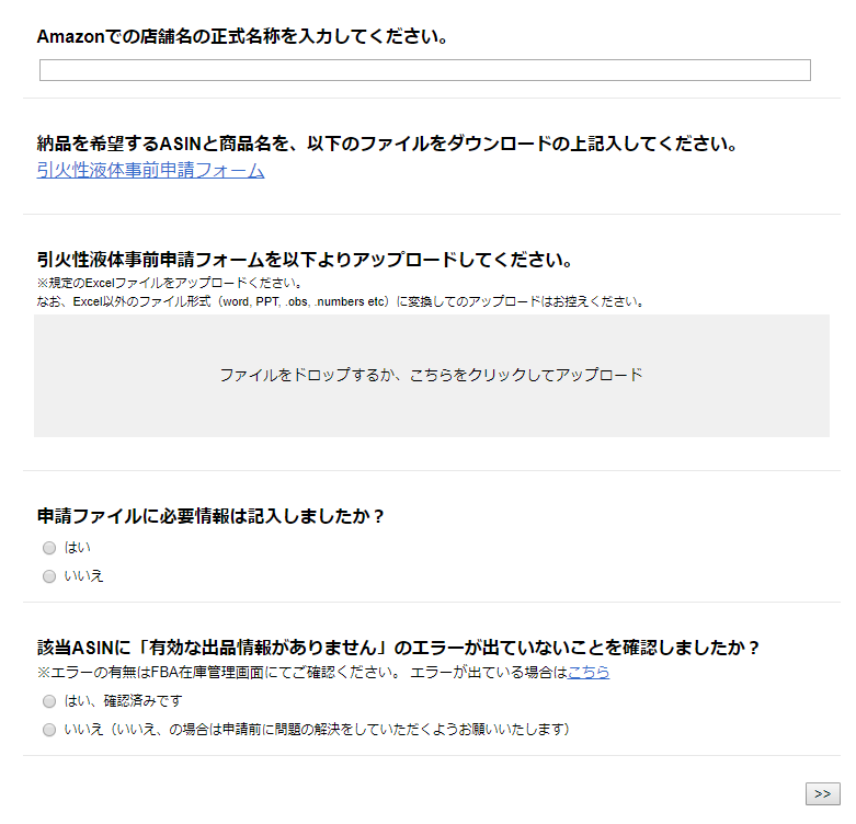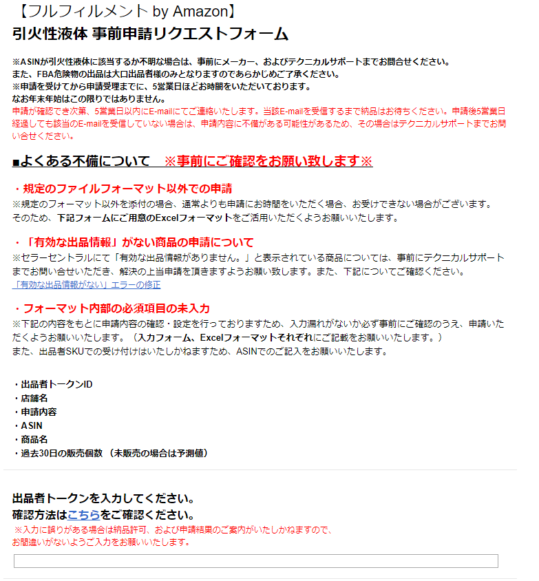 ■引火性液体にあたる商品は、事前に申請が必要