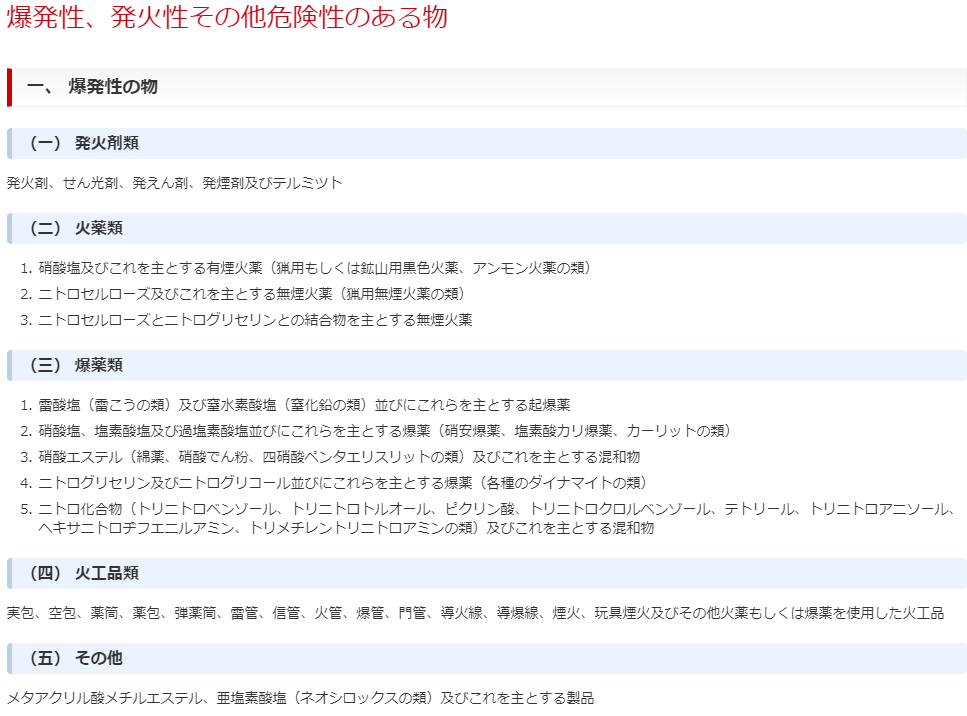 発火性、引火性、揮発性のある物品または火薬類は、