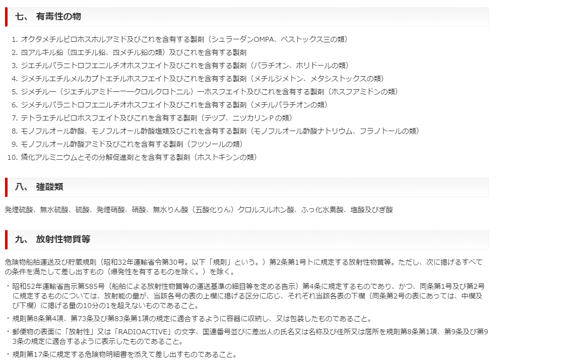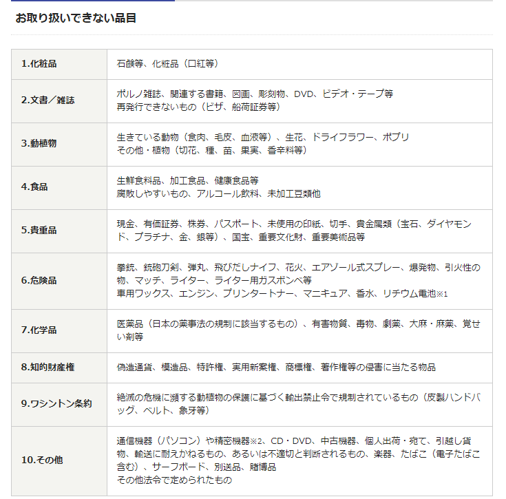 ・日本郵便で取扱えないもの(規約)