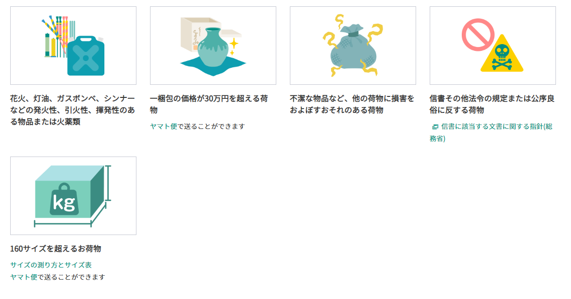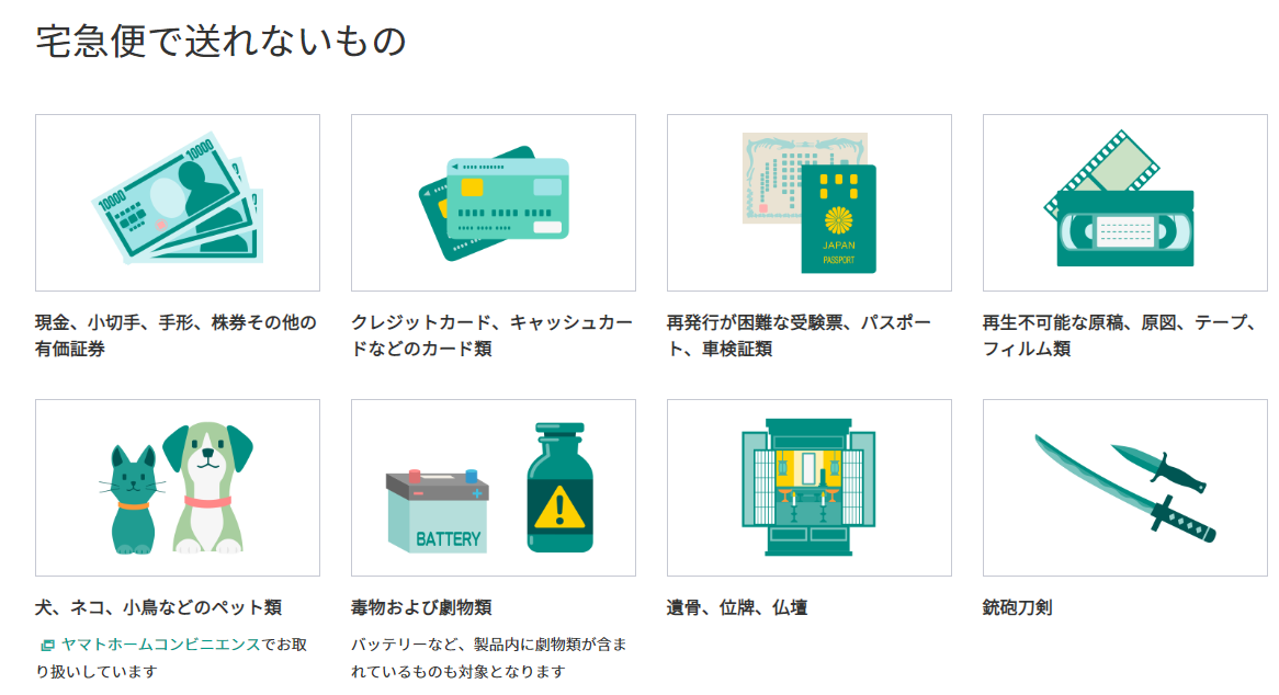 ・ヤマト運輸で取扱えないもの(規約)