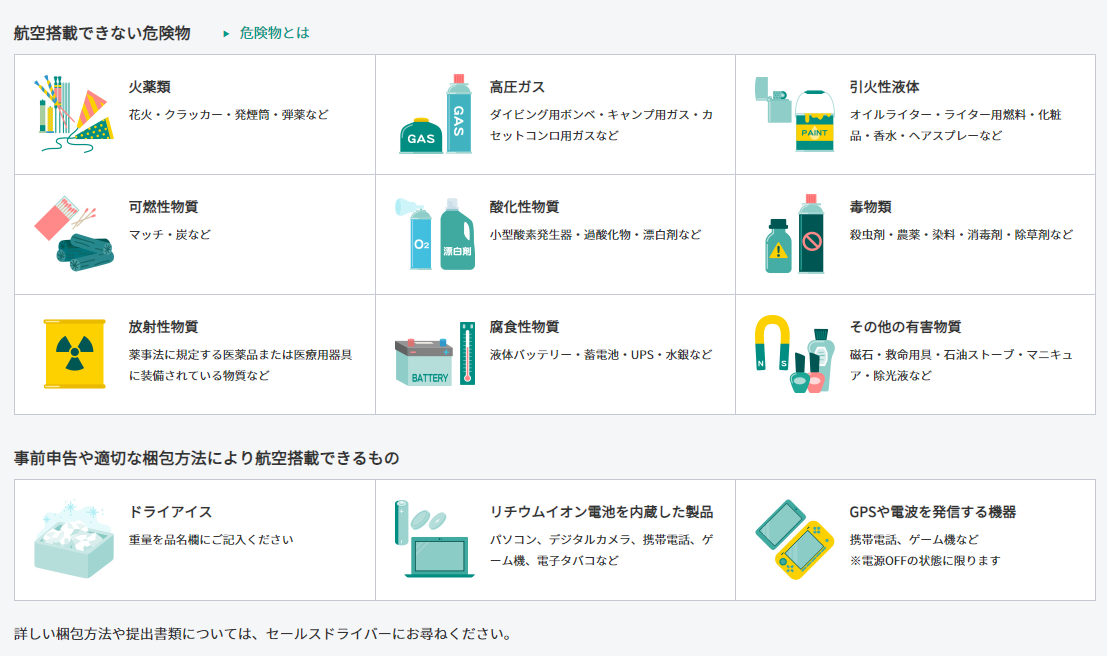 ・ヤマト運輸で航空機による輸送ができないもの