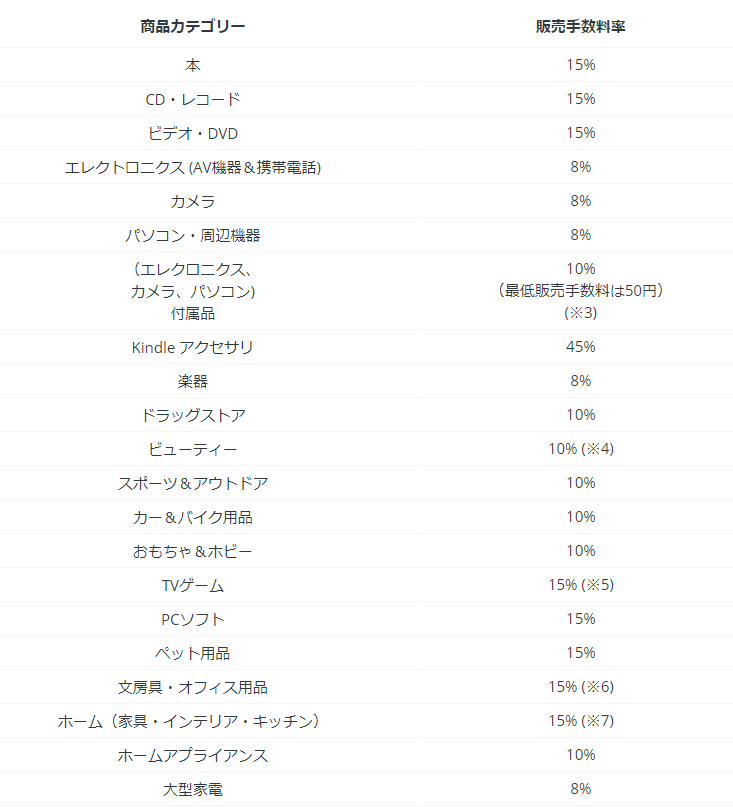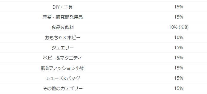 販売手数料の他に、一部カテゴリーは