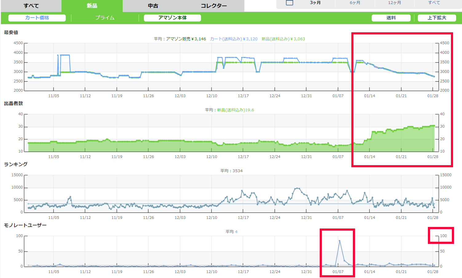 売れた直後はランキングが普段悪い商品でも