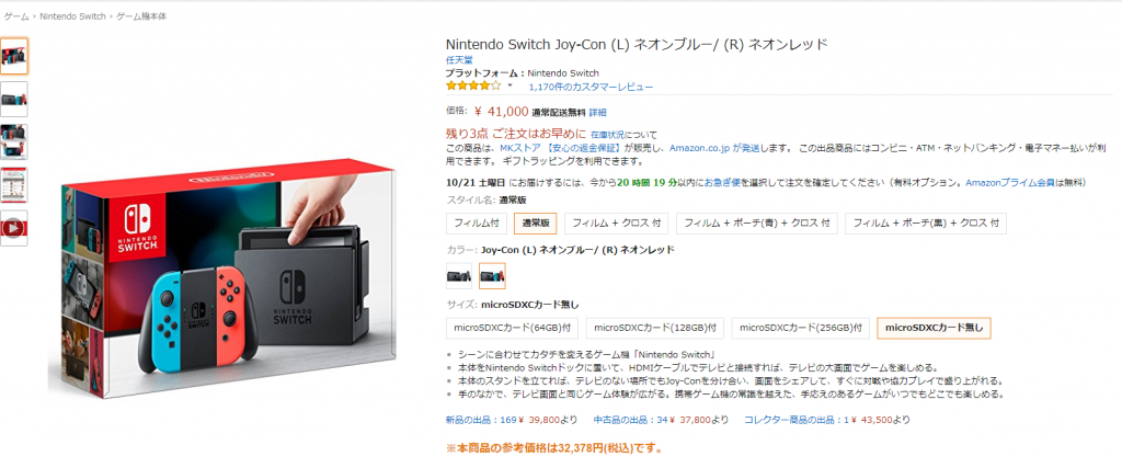 ゲーム機の出品者数はリサーチ時点で