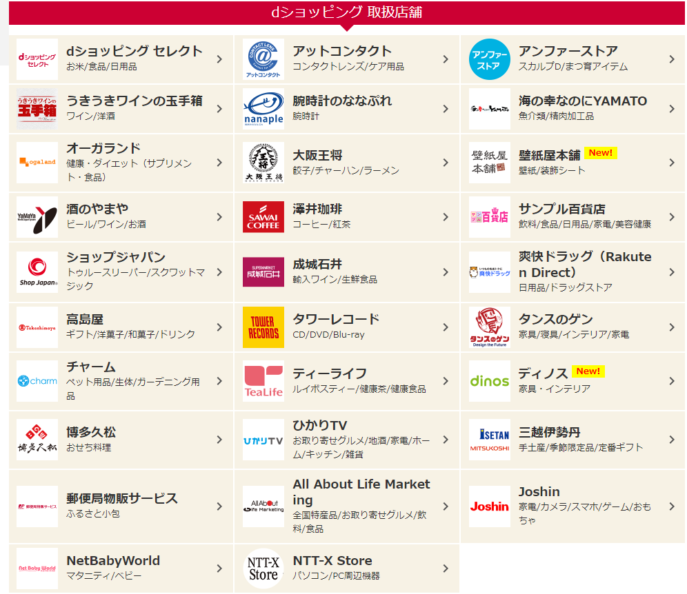 dショッピング(dショッピング サンプル百貨店含む)については、