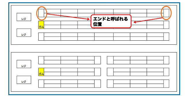 通路が狭いところでは、エンドを小さくにしか展開ができません。