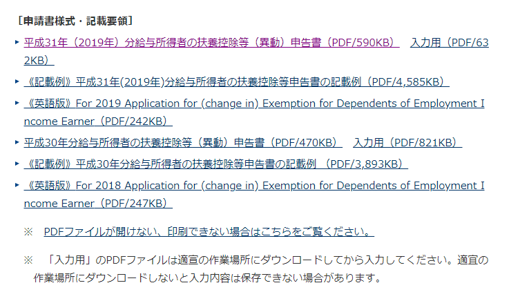 →国税庁から給与所得者の扶養控除等(異動)申告書の印刷ができます。