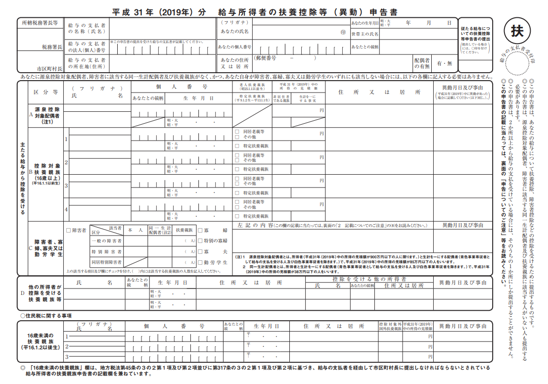 「給与所得者の扶養控除等(異動)申告書」を提出してもらいます。