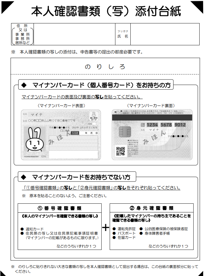 郵送する際には「本人確認書類(写)添付台紙」などを利用して、
