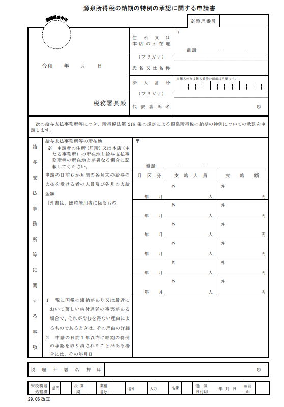 合わせて源泉所得税の納期の特例の承認に関する申請書も提出しましょう。