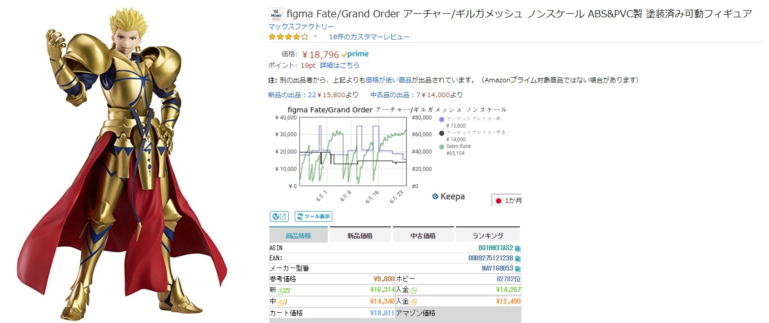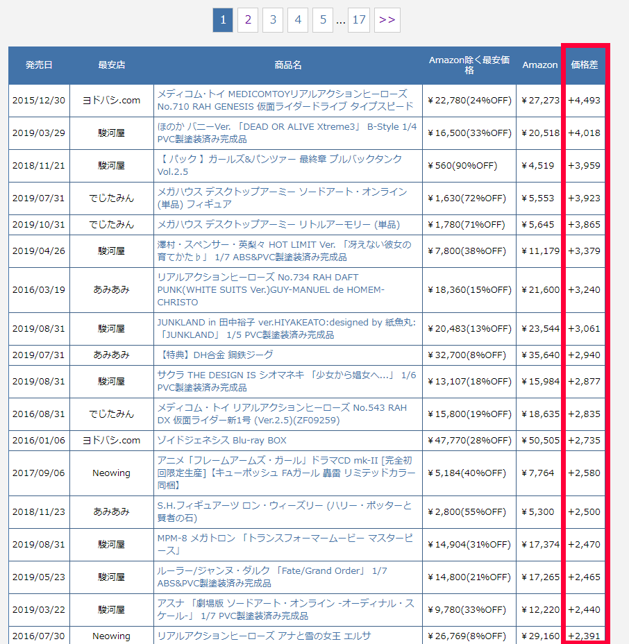 このサイトでは、Amazonでの相場とフィギュアの仕入先の価格とを