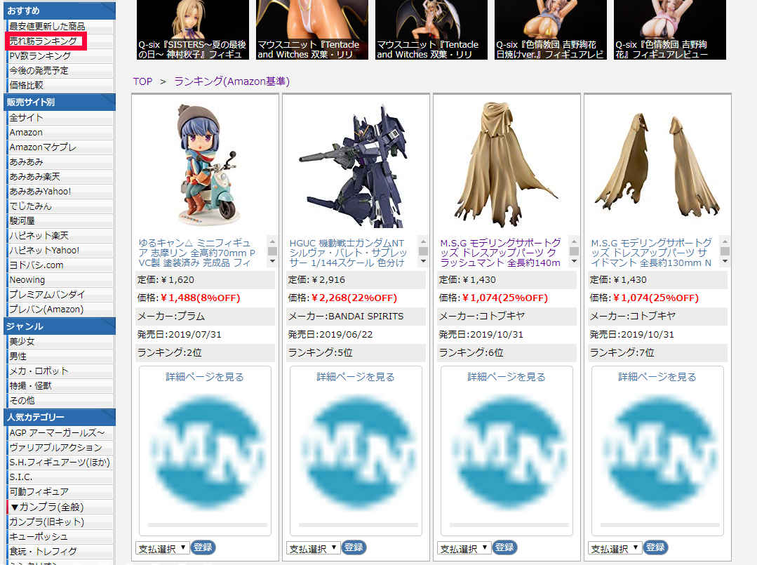 それ以外にも、今人気のある商品やフィギュアやプラモデルで