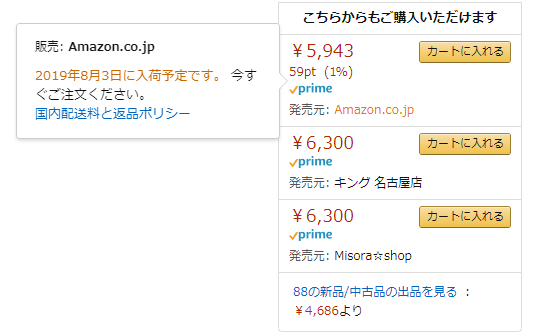 6319円でAmazonではない出品者がカートを取得していて、