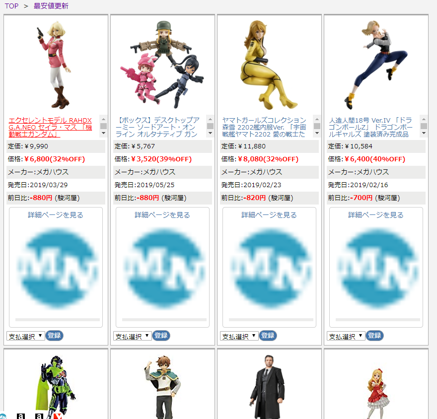 フィギュアに特化した唯一の価格比較のサイトがあるですが、