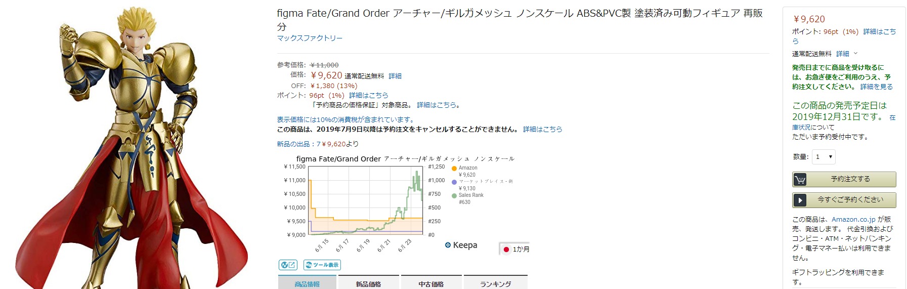 再販で12月31日に発売予定で価格が9620円です。