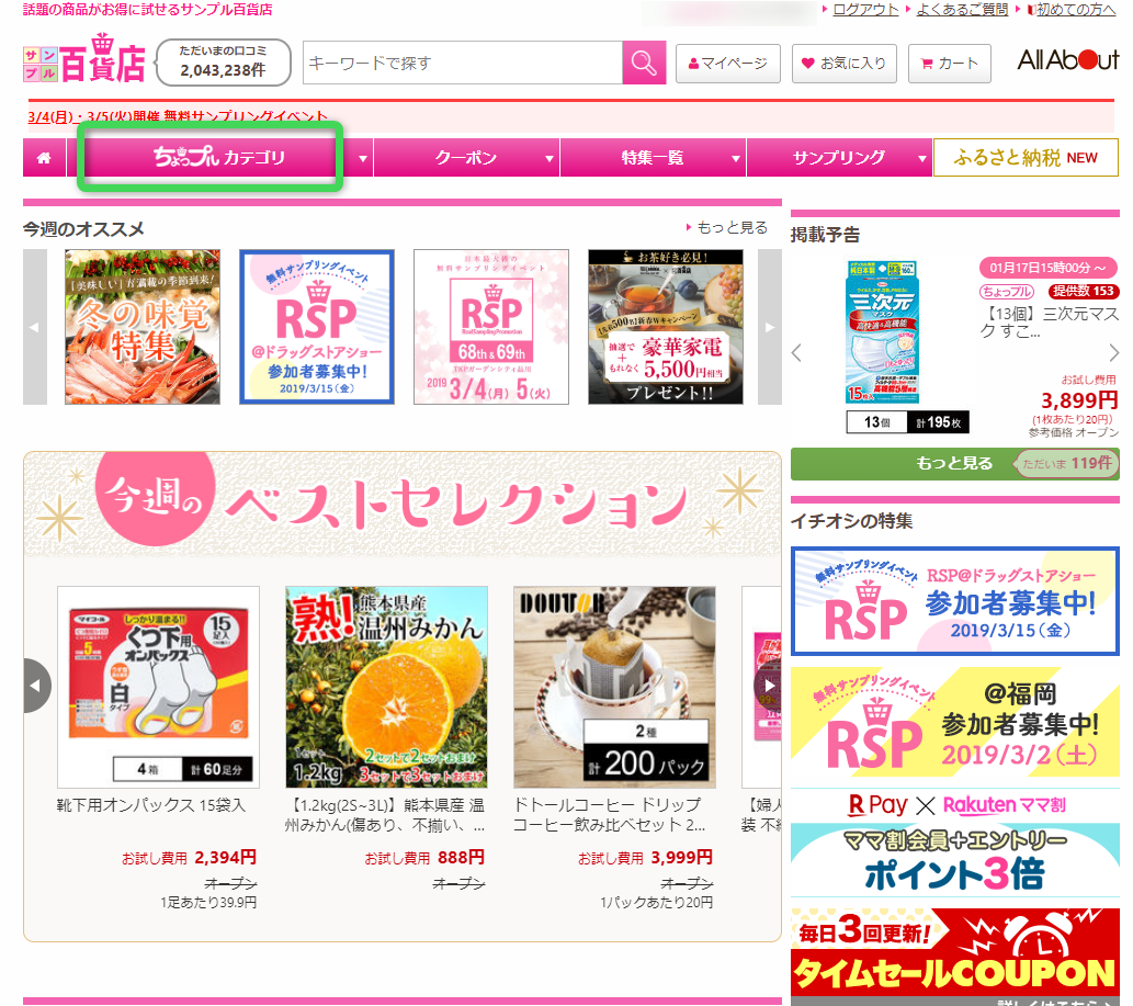 まずサンプル百貨店のちょっぷるページに入りましょう。