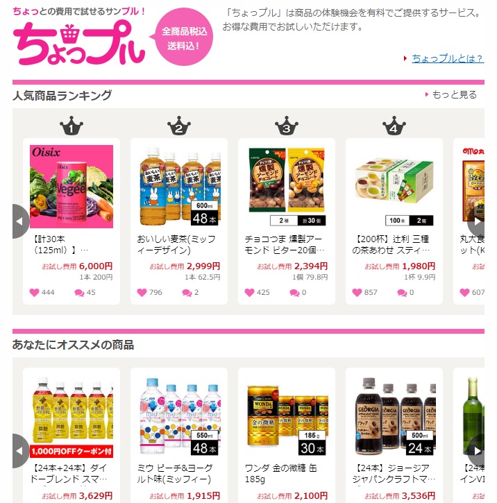 ちょっぷるとは、サンプル百貨店で提供しているサービスで、