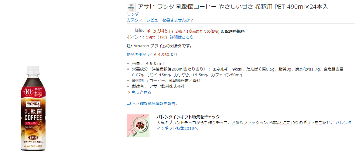 ・ワンダ 乳酸菌コーヒー やさしい甘さ (希釈用) 490ml×24本