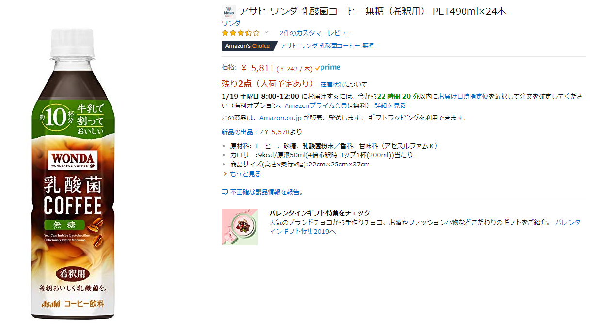 ・ワンダ 乳酸菌コーヒー 無糖 (希釈用) 490ml×24本