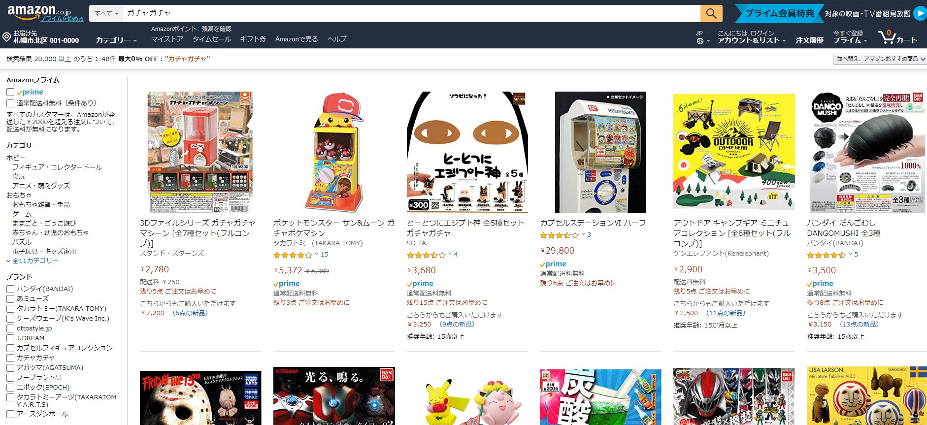 カテゴリーをおもちゃにして、ガチャガチャと検索します。