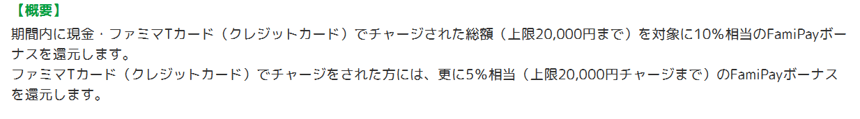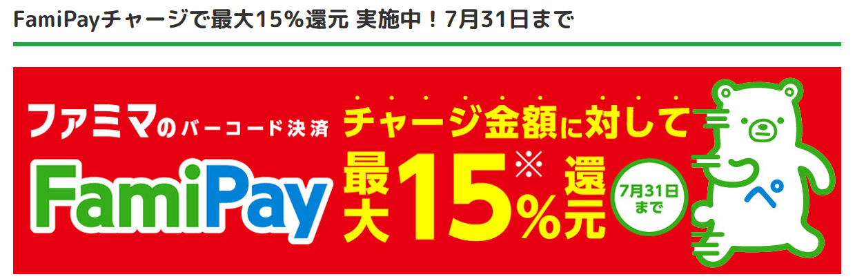 ファミマでファミペイのキャンペーンでチャージ金額に対して、