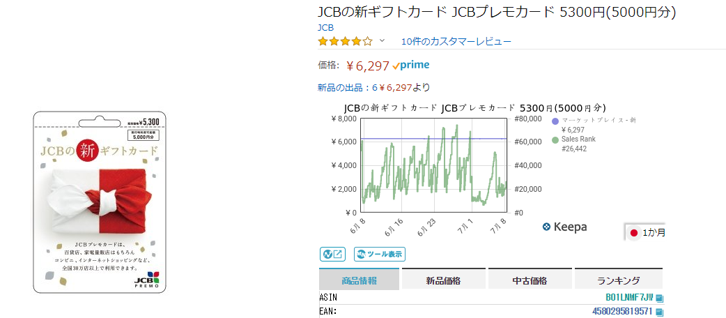 額面10000円のカートがAmazonでは、11498円で売れます。